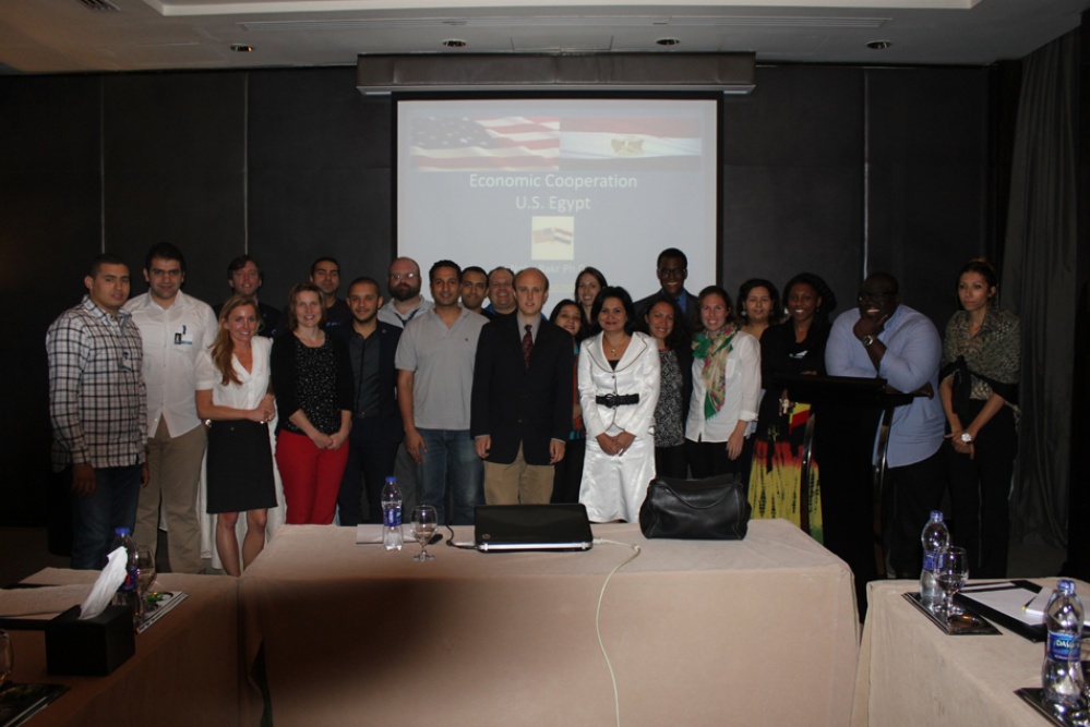 - Dr Hala El Saeed with Fellows after a session on Egypt’s economy